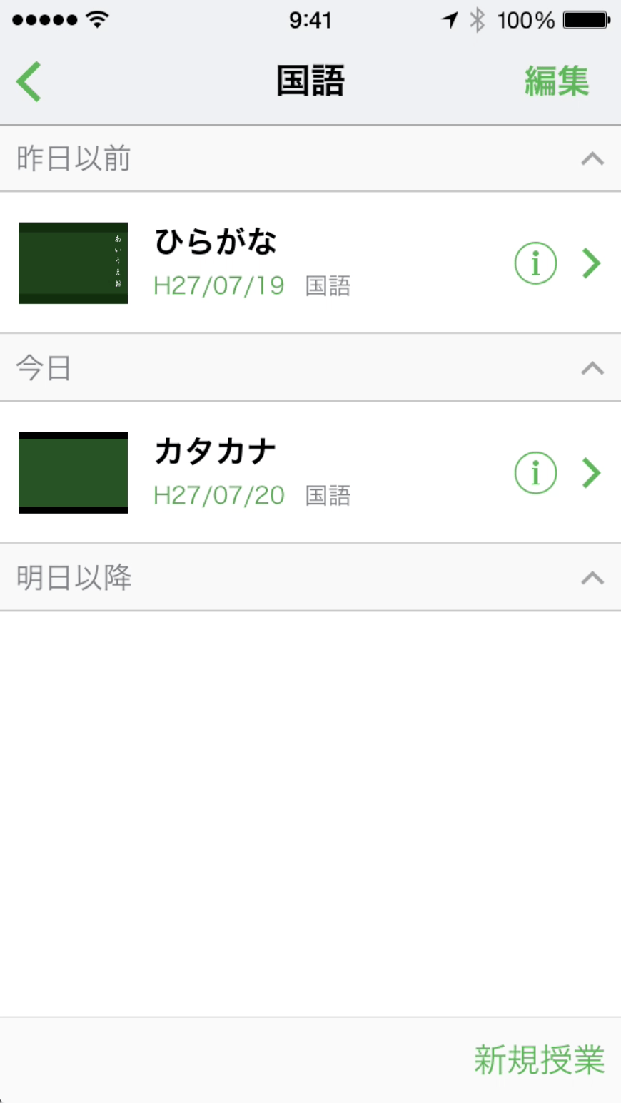 - 1 授業を選択すると、黒板の編集画面が表示されます。