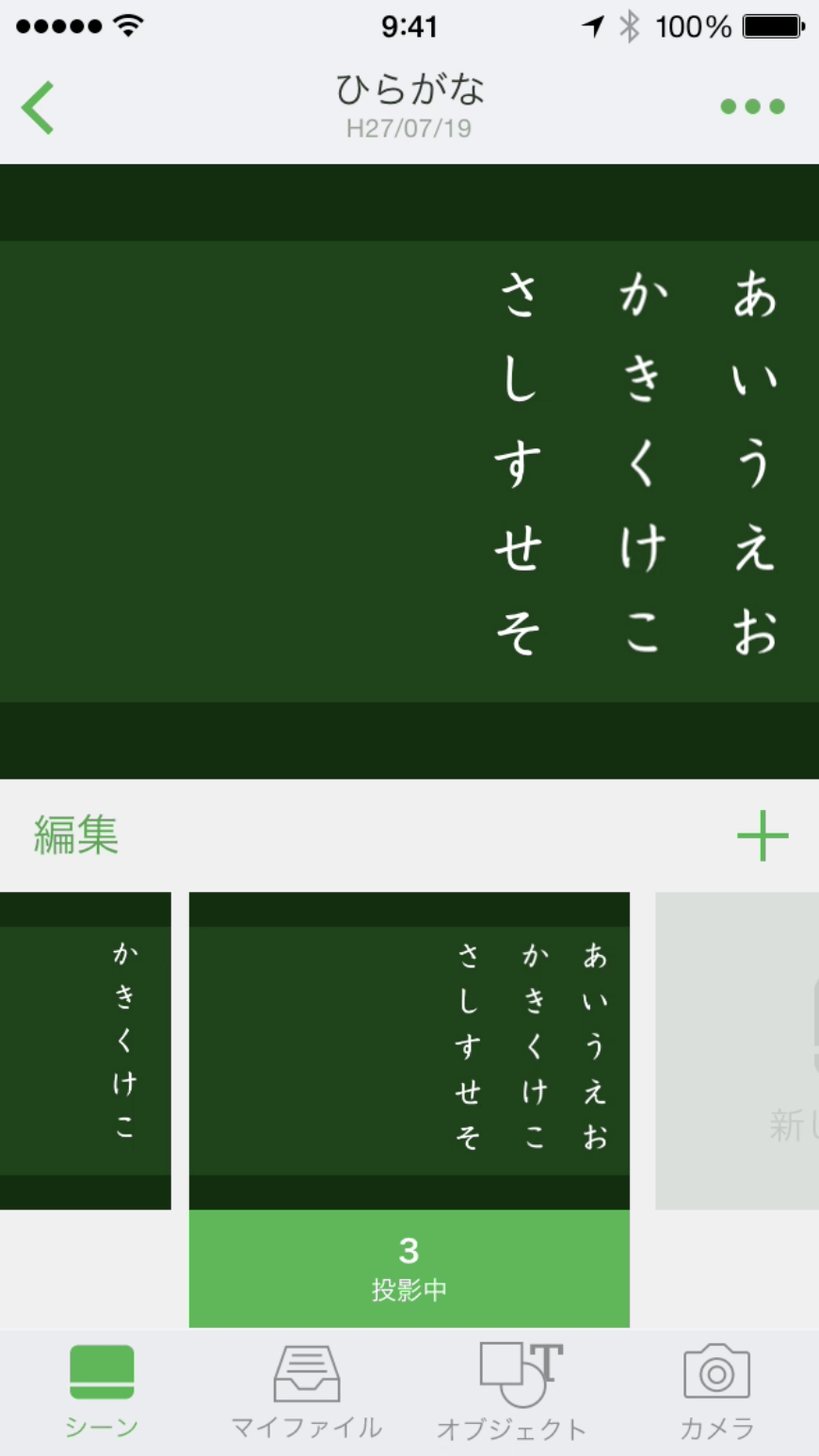 - 4 投影するシーンは、シーンエリアをスワイプして切り替えることができます。また、メニュー上のシーンをタップしても切り替え可能です。