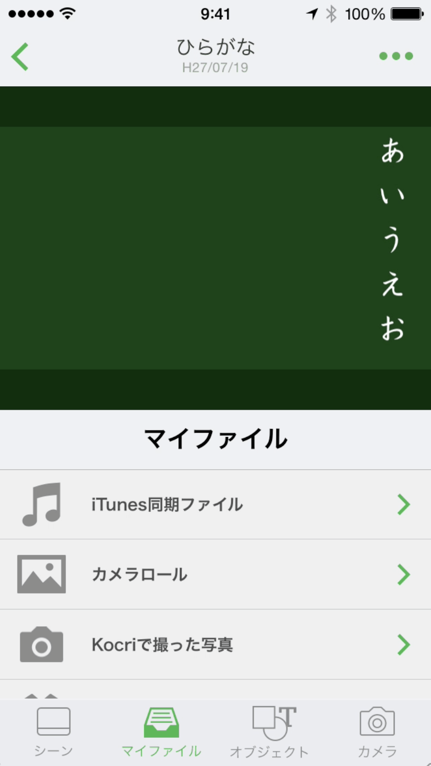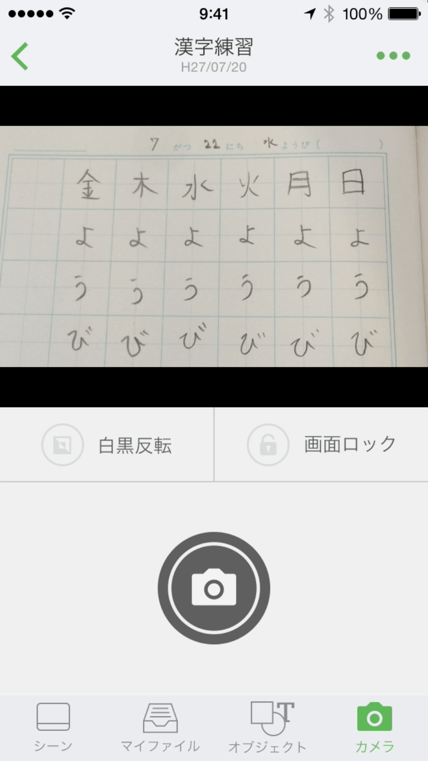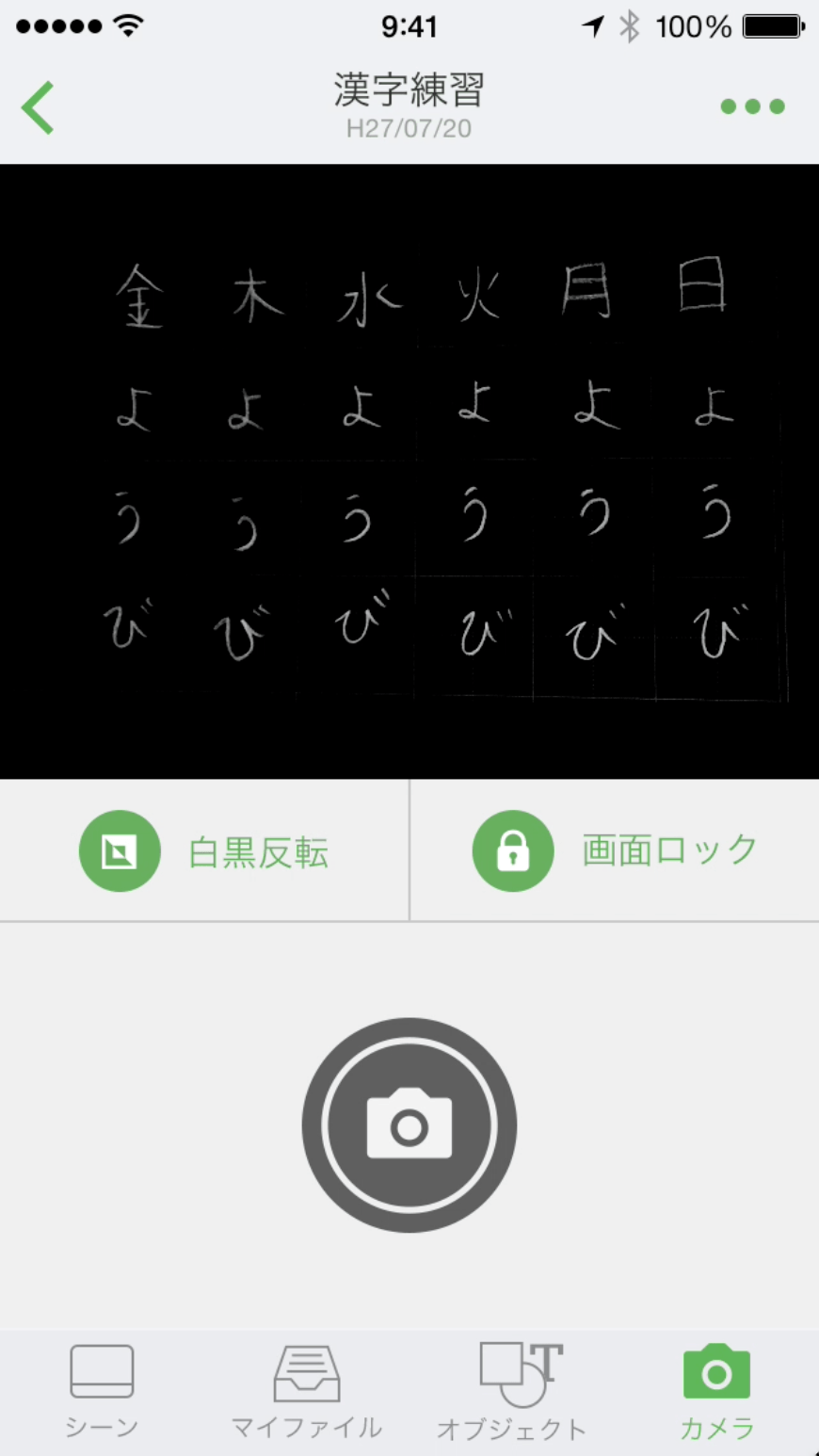 - 5 「撮影ボタン」タップで、撮影できます。撮影した画像は、マイファイルメニューの「Kocriで撮った写真」から呼び出すことができます。