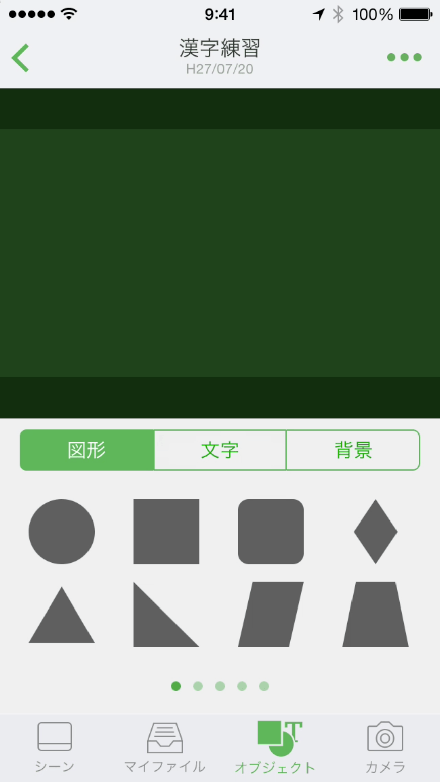 - 3 表示される予め用意された図形の中から、タップかドラッグ&ドロップでシーンに配置します。