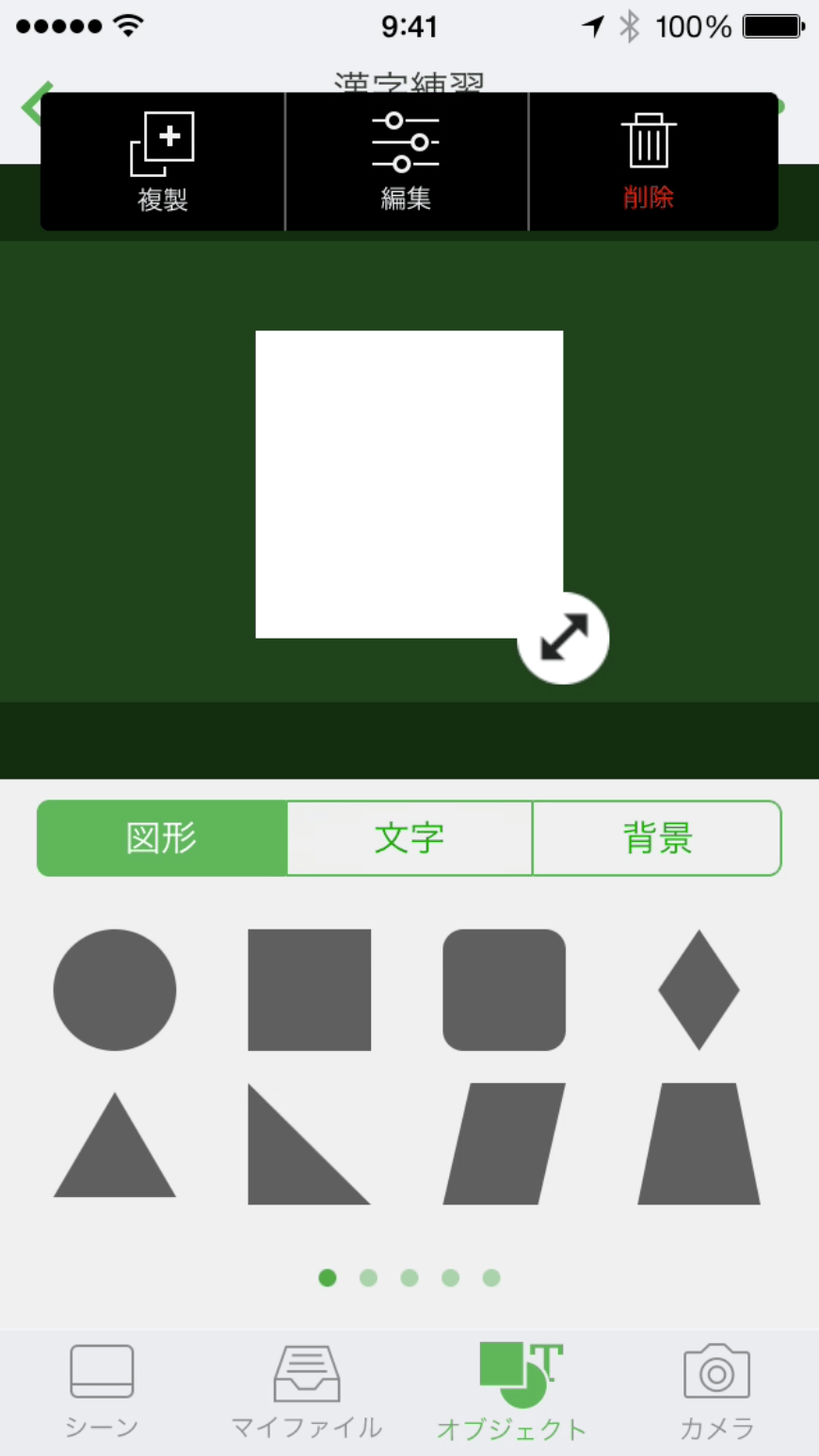 - 5 配置したオブジェクトを再度タップすると、編集メニューが表示され、複製、拡大縮小、向きの回転、削除ができます。